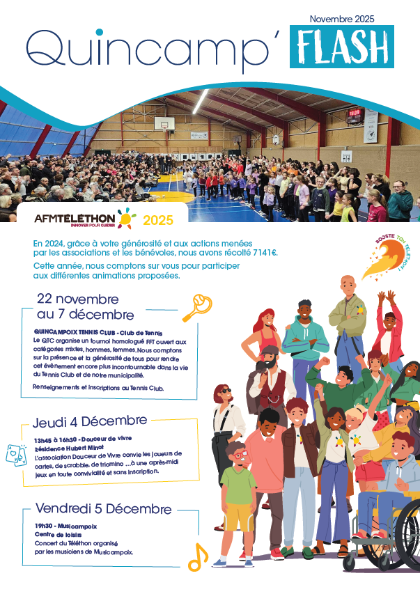 22/11/2025 >07/12/2025Venez nombreux aux animations proposées par les associations au profit du Téléthon ! En 2024, grâce à votre générosité et aux actions menées par les associations et les bénévoles, nous avons récolté 7 141€ ! Cette année, nous comptons sur vous pour participer aux différentes animations proposées ! Restez informés Rejoignez nous sur les réseaux…