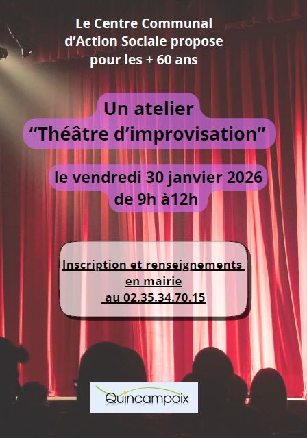Le CCAS de Quincampoix vous propose un atelier « Théâtre d’improvisation » le vendredi 30 janvier 2026 de 9h à 12h !