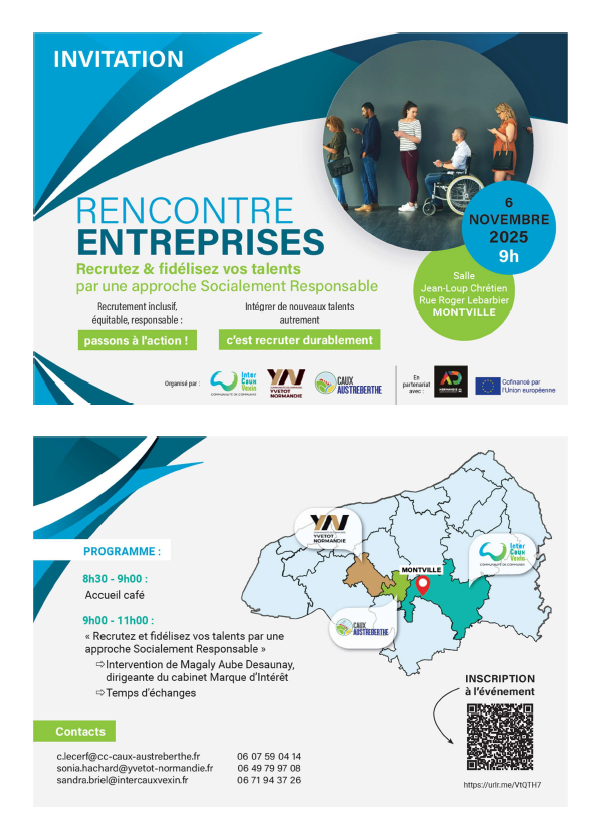 Le 6 novembre prochain à 9h00 à Montville, les Communautés de Communes Inter Caux Vexin, Caux Austreberthe et Yvetot Normandie invitent les entreprises du territoire à une matinée consacrée au recrutement responsable et durable.